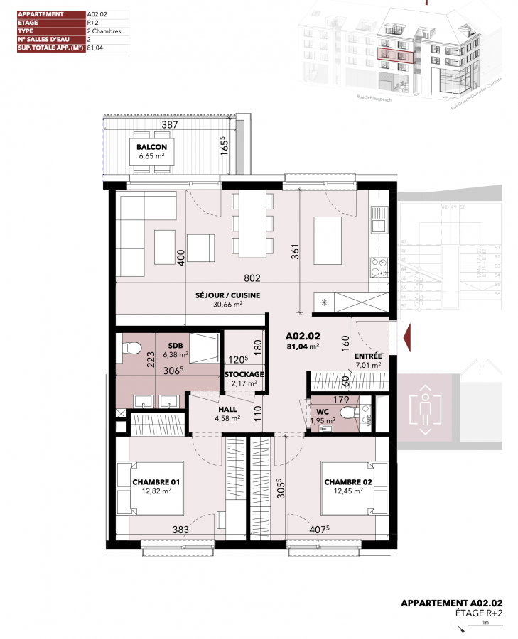 Situated on the 2nd floor of building A of the residence "CHARLOTTE", this charming new apartment of ± 81.04 m² has a balcony of ± 6.65 m², perfect for enjoying moments of relaxation outside while being in the city center.This modern residential project, distributed across two distinct buildings, offers 15 apartments as well as a commercial space, all ideally located in the heart of Mersch, just steps away from shops, schools, public transport, and other essential services.