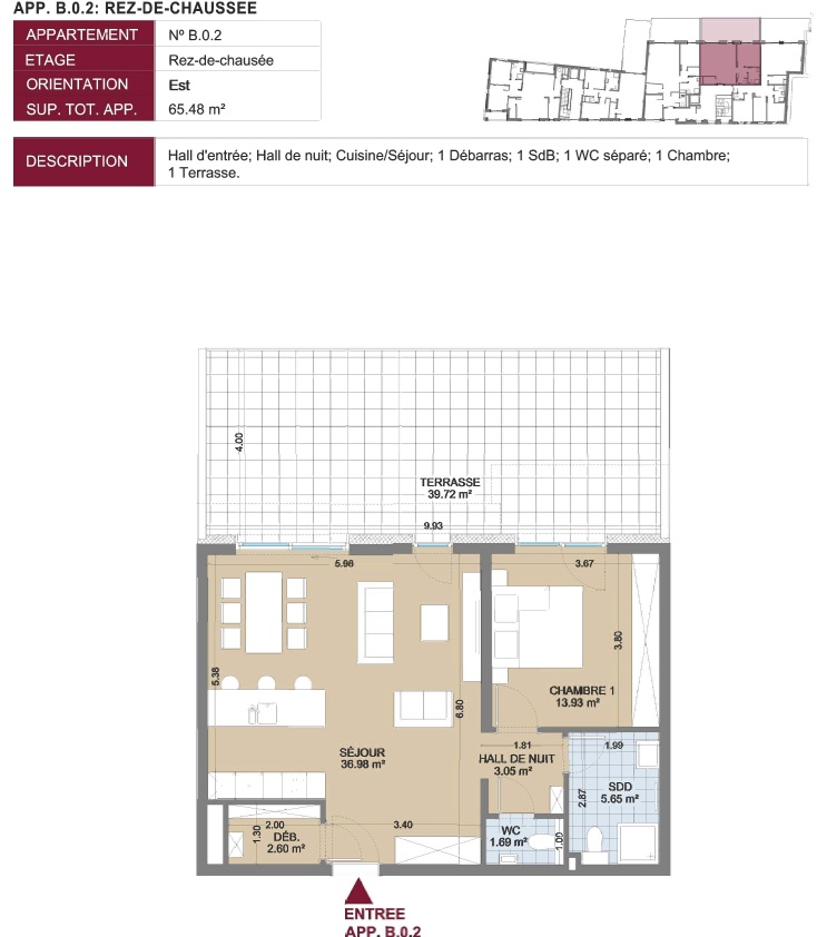 Ce bien se compose d'une chambre lumineuse ayant un accès direct vers la terrasse, une salle de douche, un grand living avec espace cuisine à équiper ainsi que d'un WC séparé.
