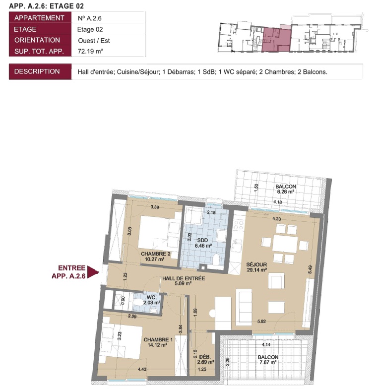 Ses 2 spacieux balcon de respectivement 7.67m² et 6.26m² offrent un espace extérieur idéal pour se détendre et profiter de la vue.